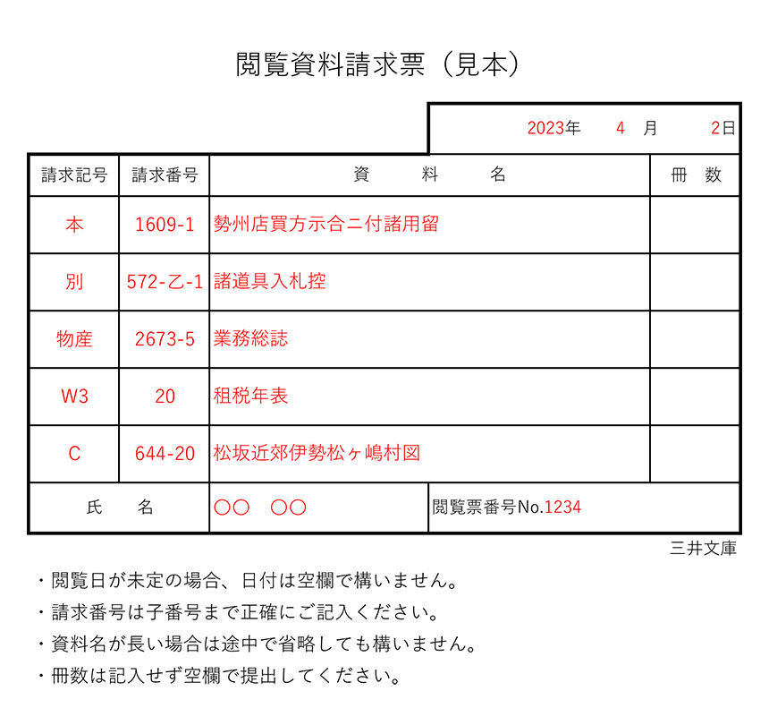 - ご予約は、三井文庫史料閲覧予約フォームよりお申し込みください。フォームでお申込みいただきますと、受付メールが自動送信されますが、それは予約確定を意味しませんのでご注意ください