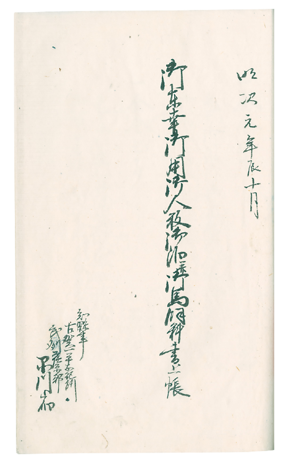 As the emperor and his entourage journeyed from Kyoto to Tokyo, records were kept of the number of people accommodated at each inn along the way, their accommodation costs, the number of accompanying horses, and the cost of feed. The document shown is for the inn at Shinagawa, where the entourage stopped for the night before proceeding on to Tokyo. Persons accommodated totaled 2,552, while horses numbered 38. The total accommodation cost for that night was 657 ryo.