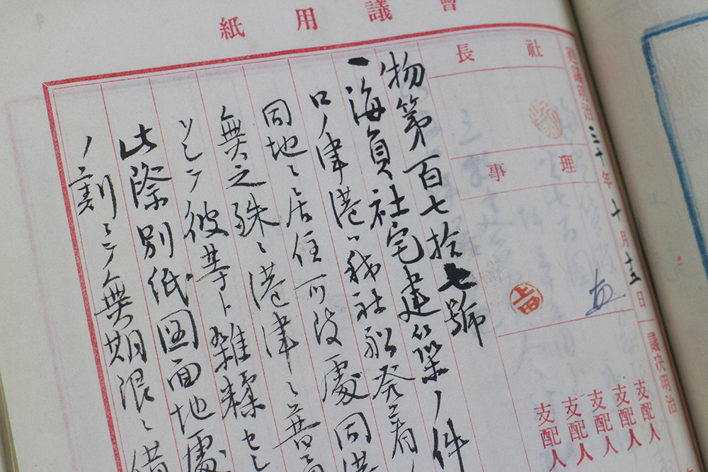益田孝は社船の重要性を繰り返し述べ、日本人船長機関長の育成登用に力を入れ、三井物産社船の船員はオフィサーもクルーもきわめて優秀として知られていました。また、口之津からも多くの優秀な船員を輩出します。三井物産「理事会議案」(物産119)によると、明治30年10月15日(1897)の第79回理事会にて「海員社宅建築ノ件」が可決され、今から120年前に海員とその家族が口之津に居住できるよう海員社宅も建設されています。