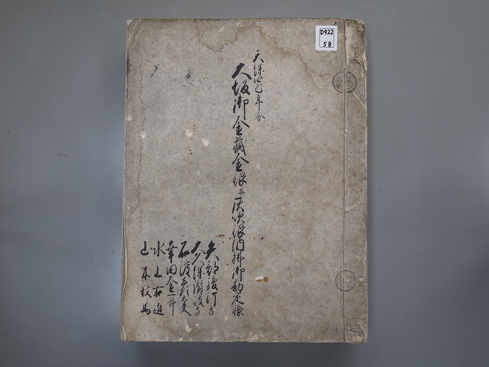 「三井文庫史料私の一点」として、公益財団法人三井文庫所蔵の「天保四巳年分大坂御金蔵金銀幷灰吹銀納払御勘定帳」(D922-58)を挙げたい。2013年・14年発行の『三井文庫論叢』第47号・第48号に、近世経済史料研究会によって史料紹介「天保期幕府財政の新史料(一)(二)」として連載されている。私は論叢の寄贈を受け、同文庫を訪れ原史料の閲覧・撮影を行った。この史料は2010年6月大阪の古書店から購入されたとのことである。筆者も原稿化を進めるうち、同文庫の方々の情報から、年次の異なる「享和二戌年分大坂御金蔵金銀井灰吹銀納払御勘定帳」1冊が2014年広島県立文書館に寄贈されたことを知り、15年同館を調査、撮影を行った。