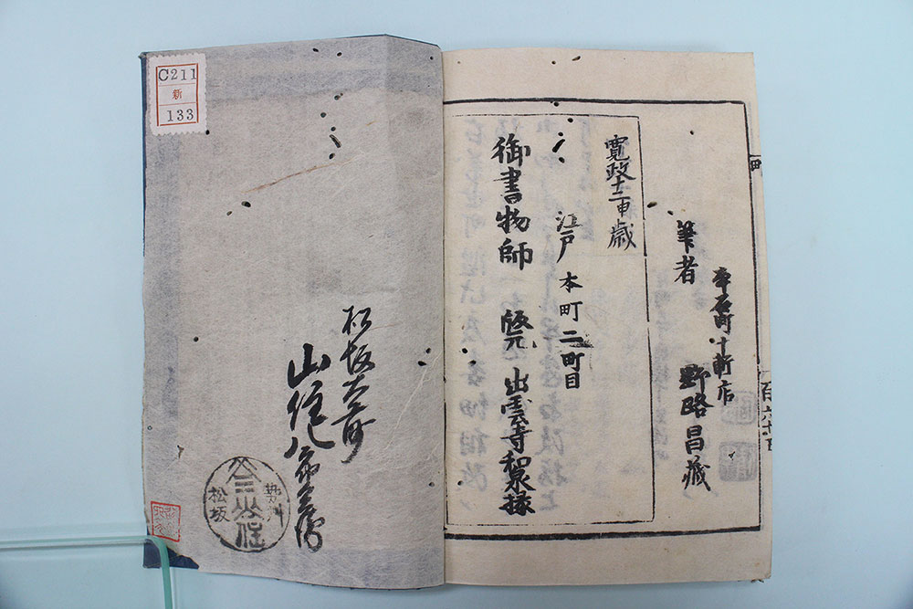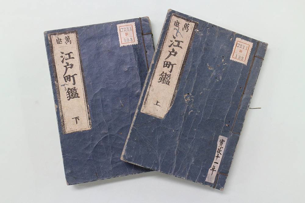 三井文庫の参考図書中に、寛政12年(1800)版「万世江戸町鑑」(C211-133)がある。江戸の市政名鑑ともいうべき「江戸町鑑」の中で、万世系が最も長く刊行され続けており、享保14年(1729)に「万世町鑑」横小一冊本が刊行され、延享4年(1747)には「万世江戸町鑑」竪小二冊本として大幅な改正・増補が行われ、さらに文化4年(1807)に、内容に変わりはないが、より見やすく改正した「増補改正万世江戸町鑑」竪小二冊本が刊行された。「江戸町鑑」は、毎年のように内容を改訂して出版されている。しかし、「万世江戸町鑑」については、文化3年まで刊行された可能性は捨てきれないものの、現在までに確認した限りでは、寛政12年版が最後のもので、三井文庫以外では所蔵されておらず、この時点での町奉行所与力・同心や名主に関する情報を提供してくれる貴重な史料といえる。また、書き込みや印記からすると、伊勢松坂大工町の山住八郎兵衛が購入し、江戸での営業活動の便宜としたものと思われる。その後、時期は未詳だが新町三井家の蔵書となり、紆余曲折を経て、現在では三井文庫に収蔵されている。「江戸町鑑」ではこのように伝来をある程度確認することができるものは少なく、その意味でも貴重である。『江戸町鑑集成』全5巻(東京堂出版、1989~90年)に、この寛政12年版「万世江戸町鑑」を、諸般の事情から収録できなかったのは残念なことであったが、これを機会に多くに人に活用されることを願っている。