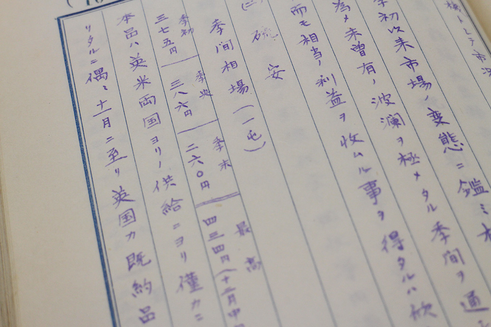 『業務総誌』には、季間相場はもちろん、市況とそれに対する三井物産の対応が記録されている。たとえば、この論文では直接の引用等はしなかったが、上記の大正9年度上半季における硫安市場については、