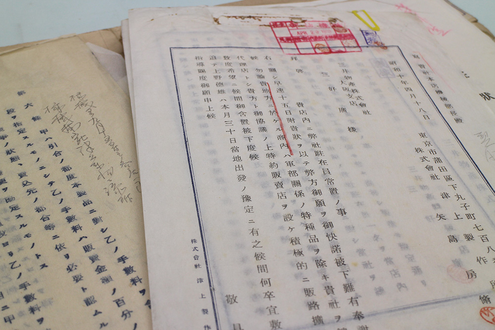 三井文庫には三井物産機械部と精密測定器具メーカーの複雑な関係を考える上できわめて有用な資料群が所蔵されていた。三井物産機械部東京支部機械掛「津上製作所製品ニ就テ」昭和6年1月27日(物産2367-41)には、津上の「製品ニ対スル世評」、「製品ノ将来」、「競争者」に関する克明な調査結果が記載されている。その結果、東京支部機械掛は「同所ハ現在小規模ノ工場ニ御座候共前記ノ如ク有望ナル将来ヲ有シ居候間今ノ内ヨリ相当手ヲ入レテ育テ上ゲル方得策ト存候」と判断し、これを受けた社内関係部署での検討を経て半年後に物産と津上の間で一手販売契約が締結される。