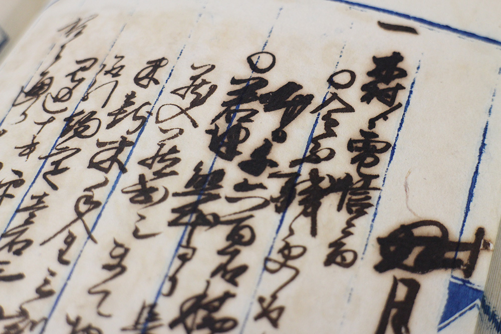 三井文庫所蔵資料中、資料保存上では、近世の古文書類は一部虫損のひどいものもあるものの、大体において安定していると言ってよいと思いますが、近代の資料のほうが問題は切実です。三井家記録文書中の明治期資料や、三井鉱山資料にもこのインクによる劣化はみられます。他にも蒟蒻版、青焼きなどの薄れていく文字の問題もあり、また近代-特に戦時期の資料では、紙自体の劣化や、ホチキス・クリップ等使用の錆による劣化も多くみられます。インク劣化問題については、複写物作成以外に、根本的な対策はいまだ見いだせない状況ですが、資料保存の専門家の方から助言も受け、書庫内資料保存環境を整備し、なるべくよい状態を保てるようつとめています。