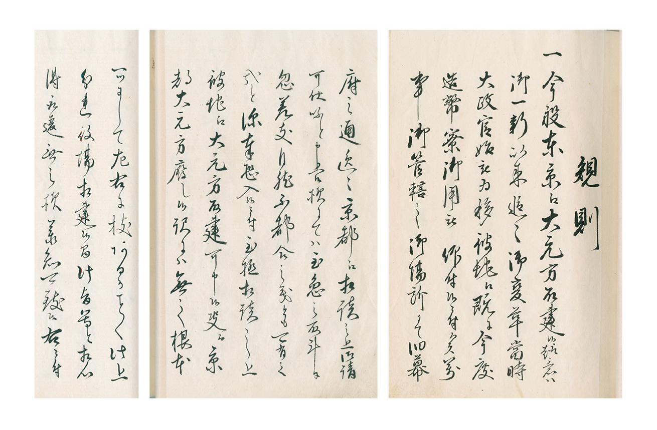 明治4年(1871)10月20日、大元方の臨時会議が開かれ、北家当主の三井高福はじめ、大元方役の三井同苗4人は東京へ移住することとされた。この規則は、その決定を踏まえて、統轄機関である大元方を東京にも置くことが明記されたもの。ただ、伝統ある京都から東京に移ることに対しては、大きな抵抗も予想されたため、ひとまずは、東京と京都の二つの大元方が対等に存在することが強調された。