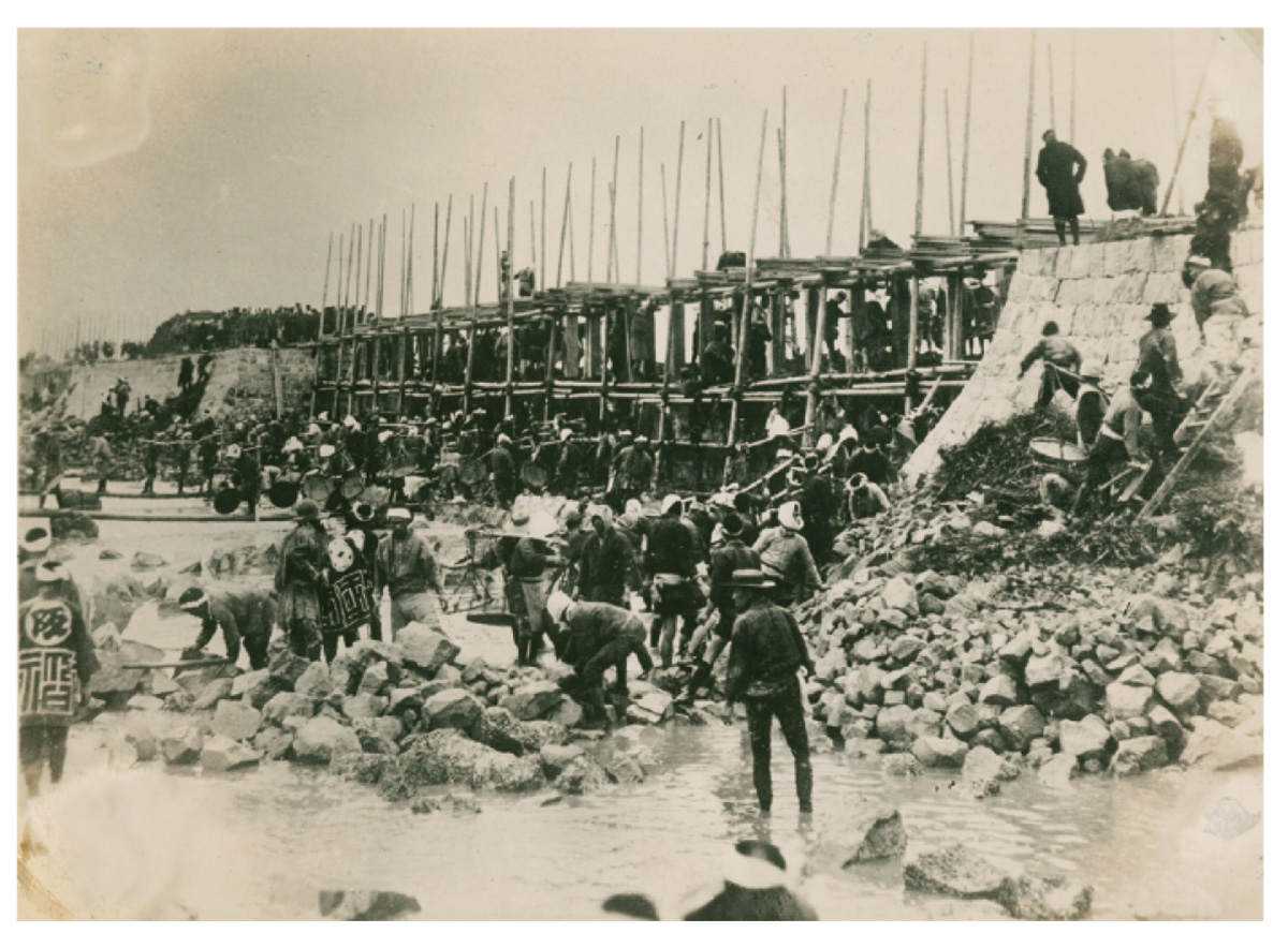 土木機械がなかった当時において、石垣の築造、岸壁工事、ドック内の掘り上げなどの作業は、すべて人力で行われた。