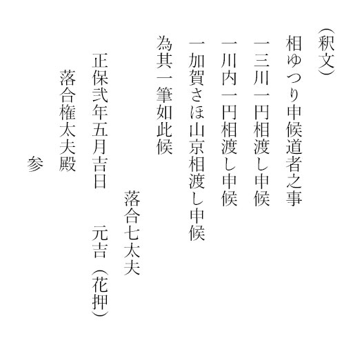 79 落合七太夫元吉譲状