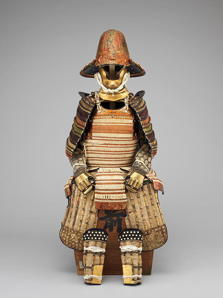 この甲冑は、元祖・三井高利(宗寿・1622~1694)の祖父で、三井家の家祖とされる三井高安(宗観・?~1610)の所用として伝わり、顕名霊社の御神宝として祀られていたものである。高安は近江の佐々木六角氏に仕えた武士で、鯰江城の城主として越後守を名のっていたといわれる。六角氏滅亡後に伊勢に移り住み商人になったという。小札と椎形の兜などは白檀塗で、宝暦5年(1755)7月に納めたと記される具足櫃に入り、大正14年(1925)に修復されている。